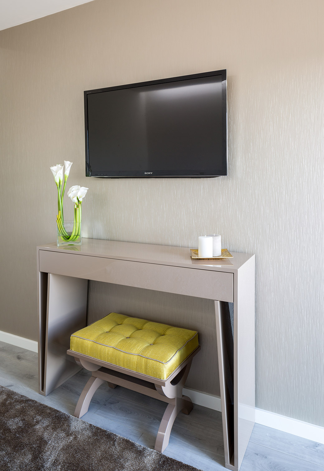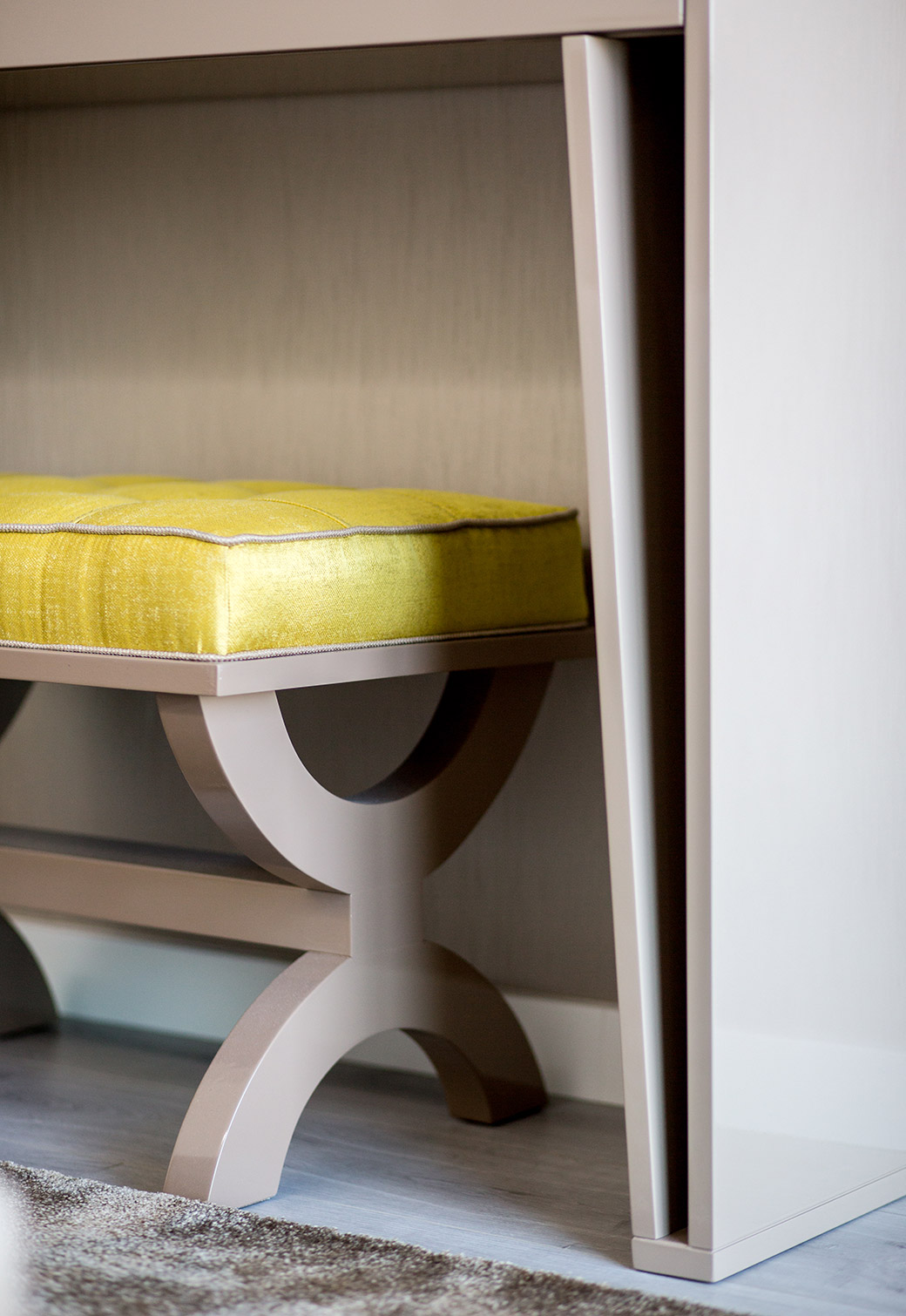 Sendo este projeto uma continuação da sala, foram mantidos os tons mais sóbrios e elegantes, por forma a manter uma linha condutora entre divisões da mesma casa.