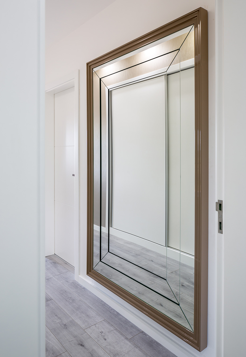 Detalhes como o espelho de grande dimensão ou os pés do aparador, fizeram do quarto do Pedro um espaço único.