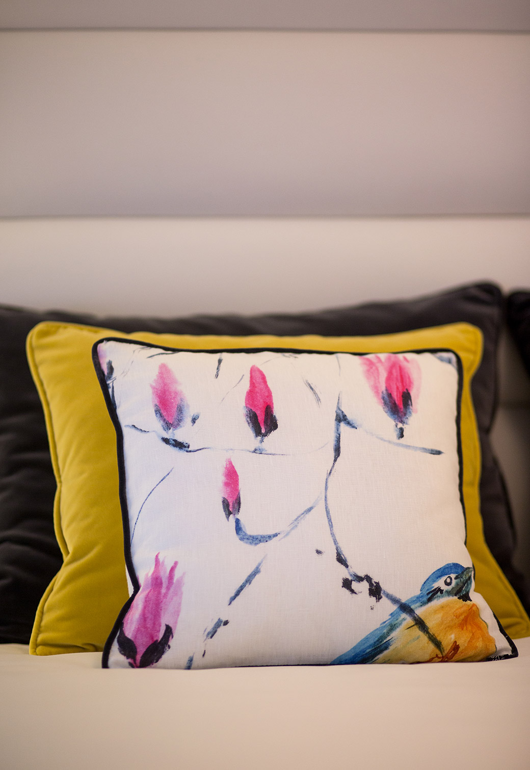 Com uma simplicidade ímpar, o quarto da Alda é pautado pelo rigor na escolha dos elementos e pela forma com as cores suaves e neutras, contrastam com as cores vivas e padrões.